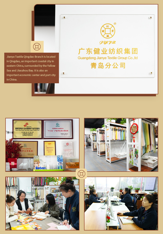 Jianye Textile Qingdao Branch is located in Qingdao, a key coastal city in eastern China, adjacent to the Yellow Sea and embracing Jiaozhou Bay. As a major economic hub and port city, Qingdao provides a strategic and advantageous setting for the company’s operations.